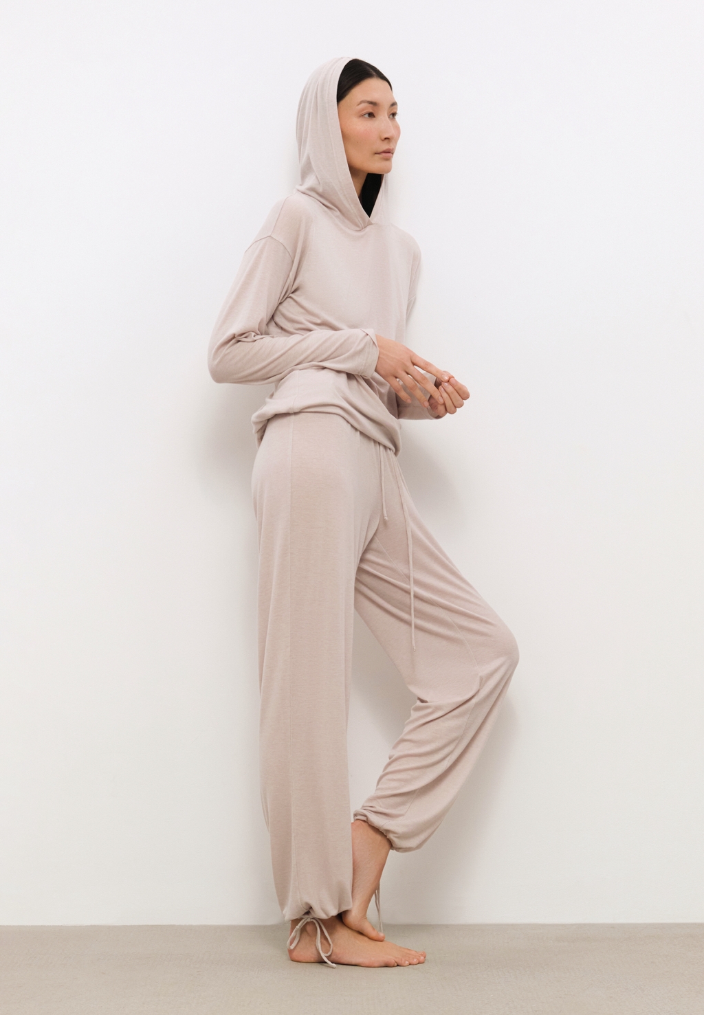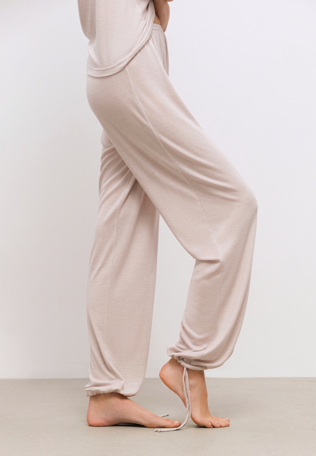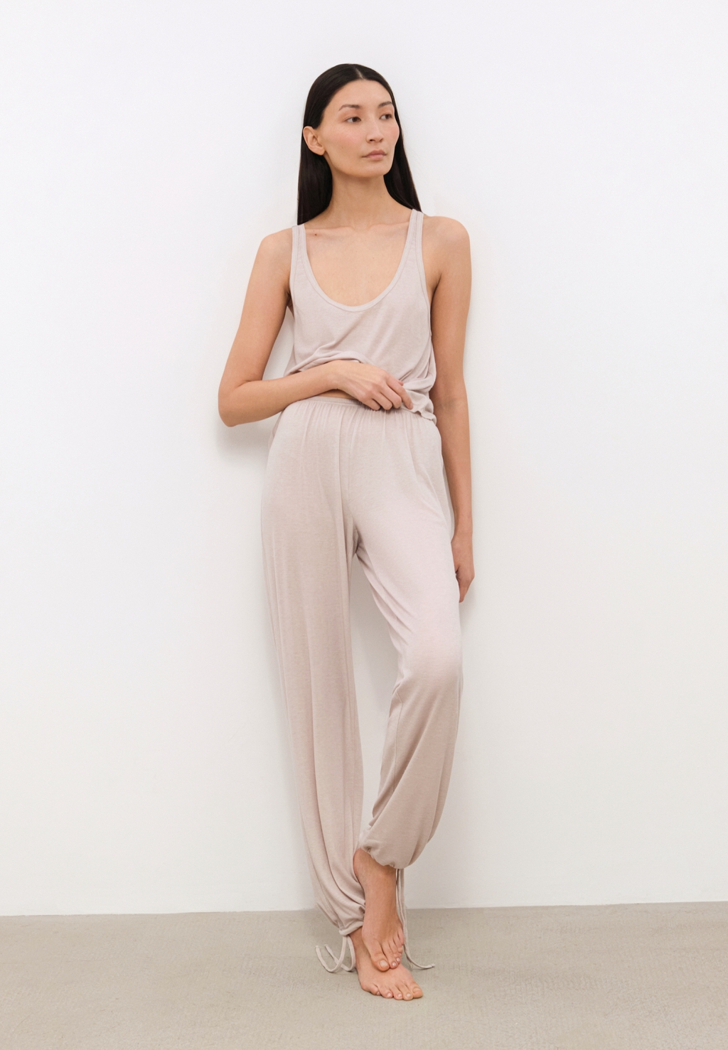 Брюки свободной посадки выполнены из нежнейшего тонкого трикотажа на основе лиоцелла и шерсти. Благодаря полностью натуральному составу, брюки обеспечивают непревзойденный комфорт для тела. Деталь, в виде регулирующихся завязок, позволяет создавать актуальные образы в расслабленном стиле.