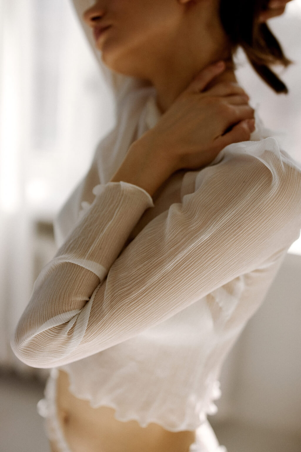 Полупрозрачная блуза liya из 100% шёлка почти не ощутима на теле, отлично сочетается с бралеттом из шёлка afina, делает образ нежным и романтичным. Блузу можно использовать в качестве основы под пиджак или как отдельный предмет гардероба, а также для романтичных домашних образов. Блуза имеет красивую жатую фактуру, без застежки