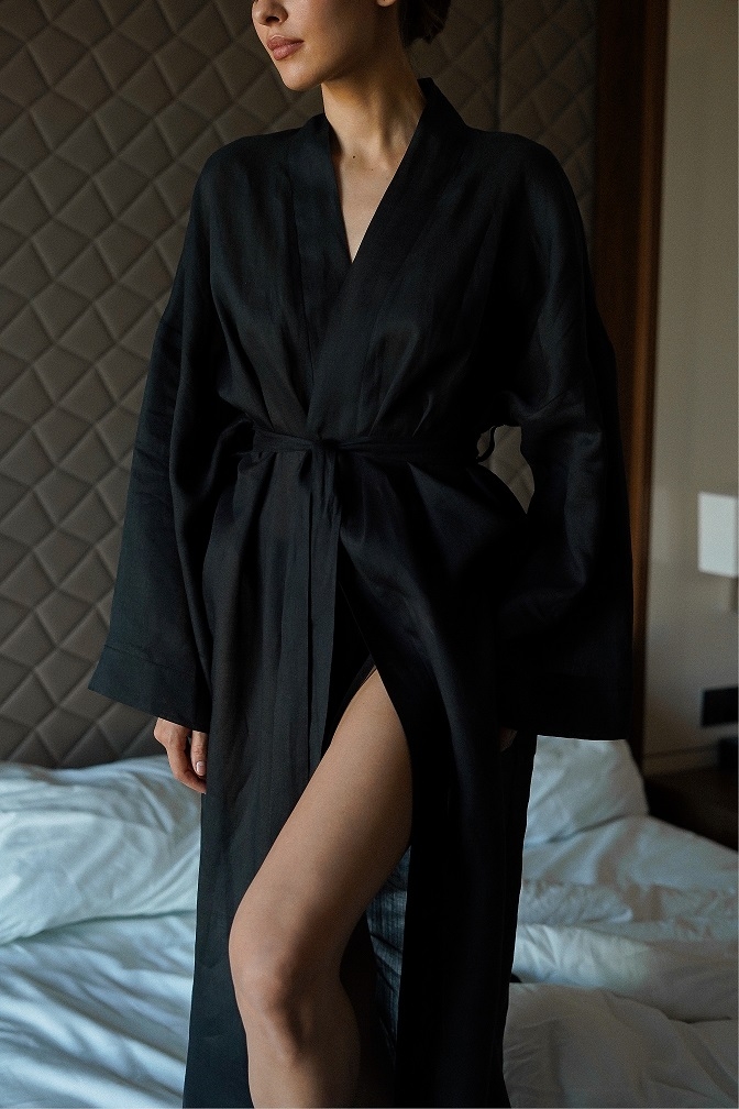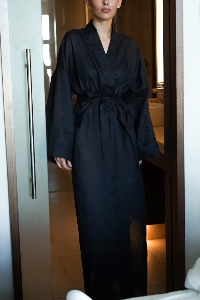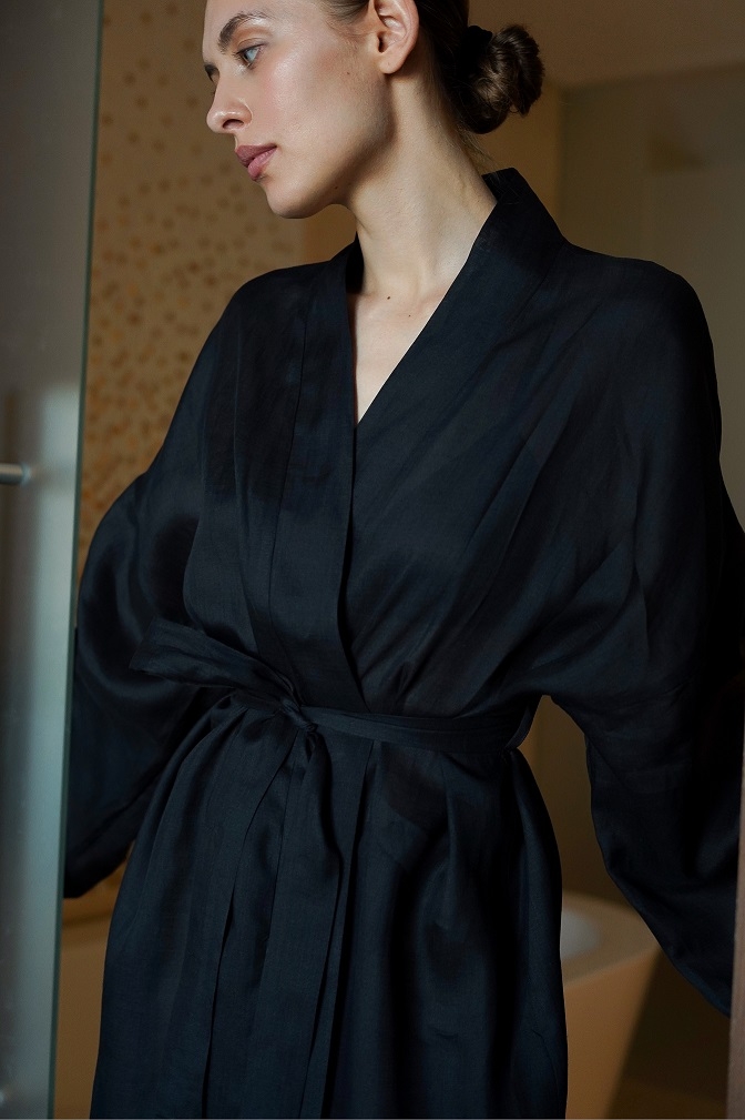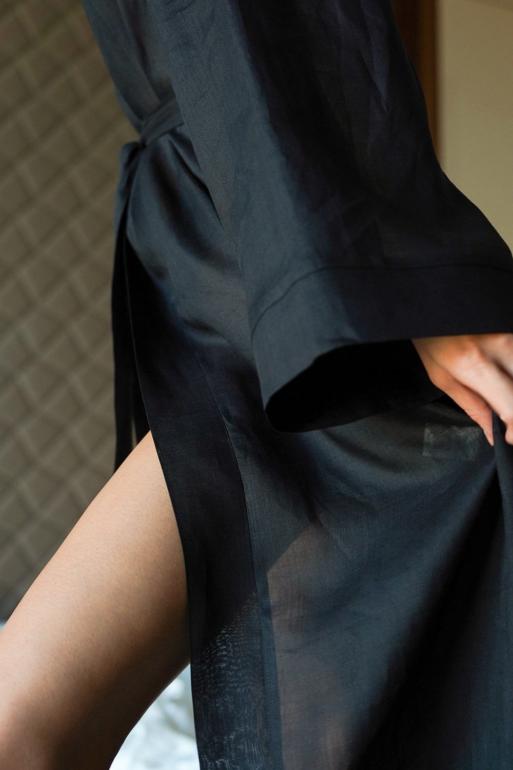 Лёгкость, грация и истинный комфорт – то, что вы испытаете, надев стильный халат кимоно из натуральной 100% рами. Свободный фасон, широкие рукава, длина макси и полностью натуральная слегка просвечивающаяся ткань дают ощущение невероятной лёгкости и грации. Халат можно использовать как дома, так и в отпуске у моря, в качестве стильного кимоно.