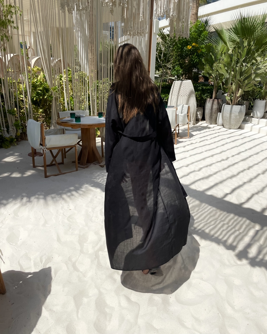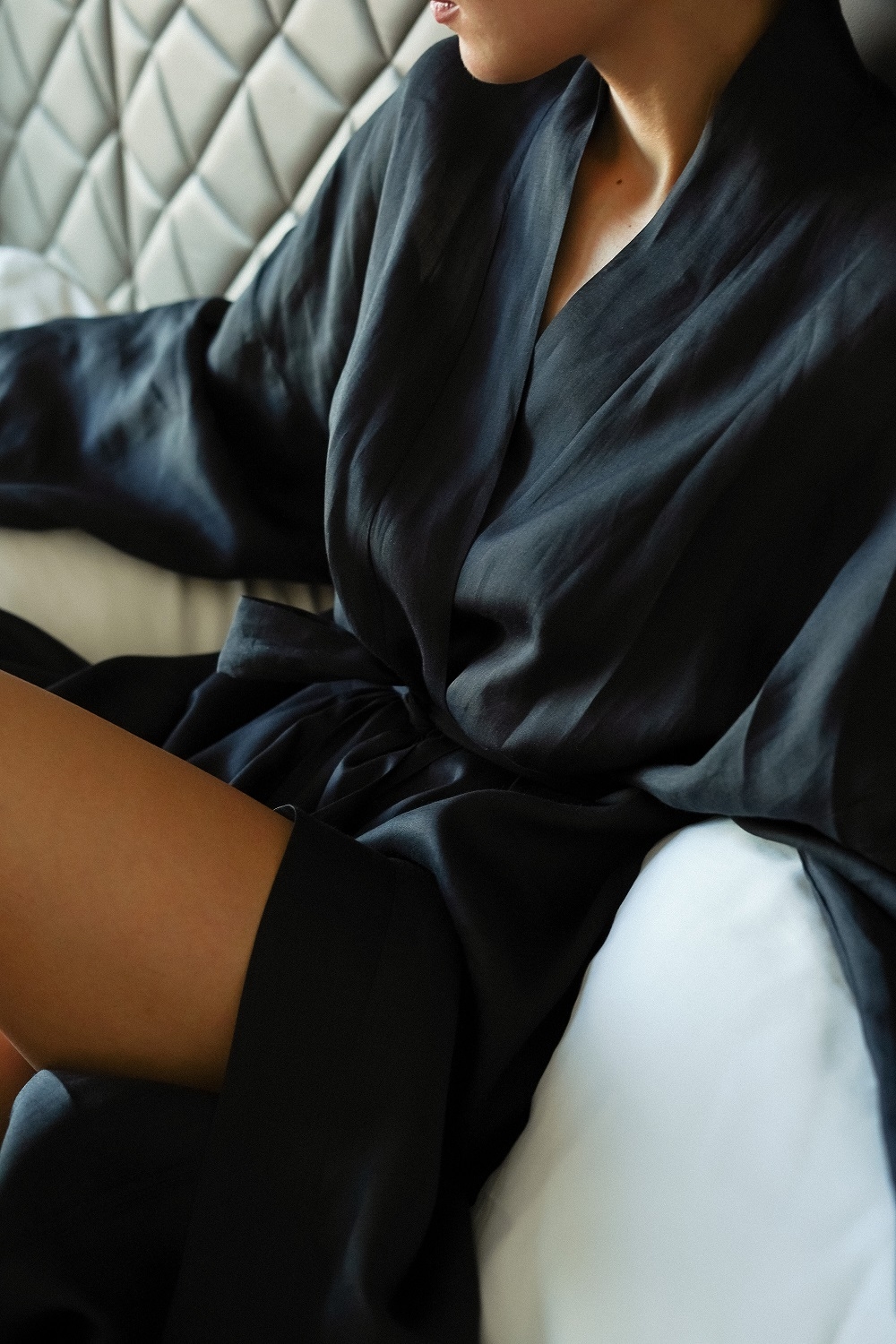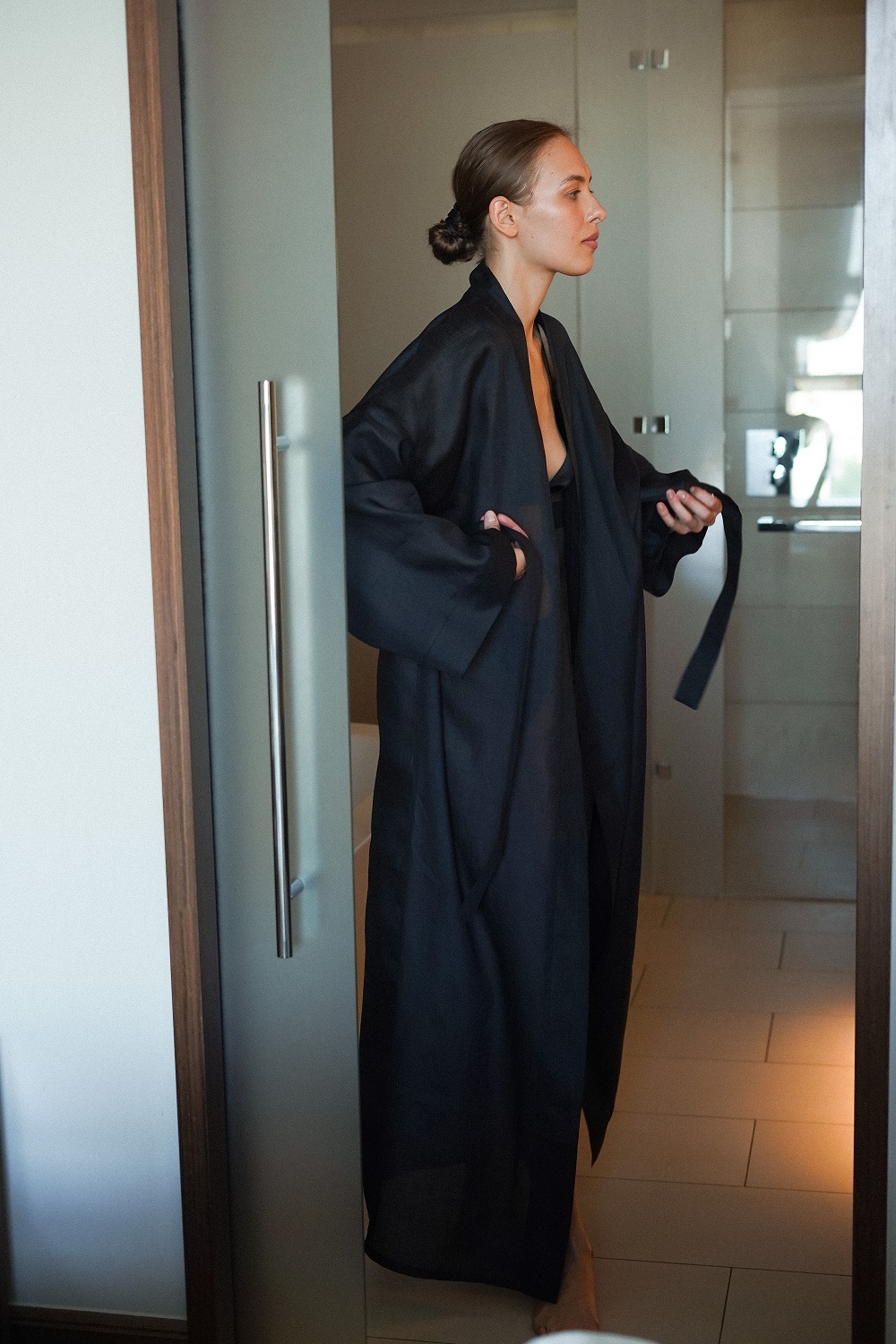 Лёгкость, грация и истинный комфорт – то, что вы испытаете, надев стильный халат кимоно из натуральной 100% рами. Свободный фасон, широкие рукава, длина макси и полностью натуральная слегка просвечивающаяся ткань дают ощущение невероятной лёгкости и грации. Халат можно использовать как дома, так и в отпуске у моря, в качестве стильного кимоно.