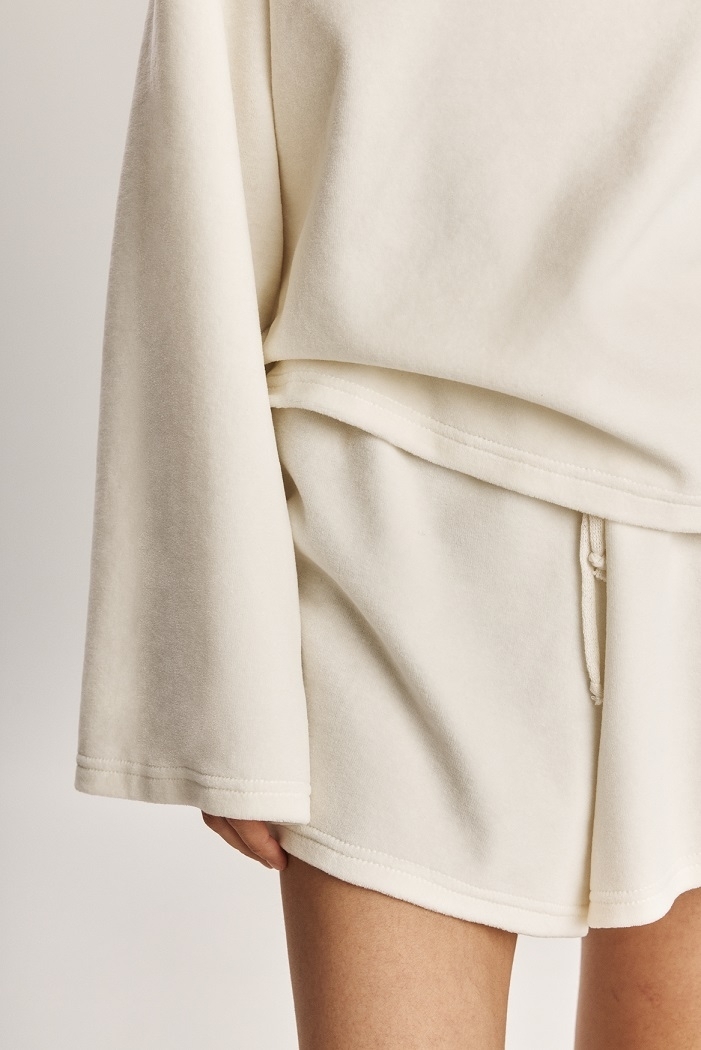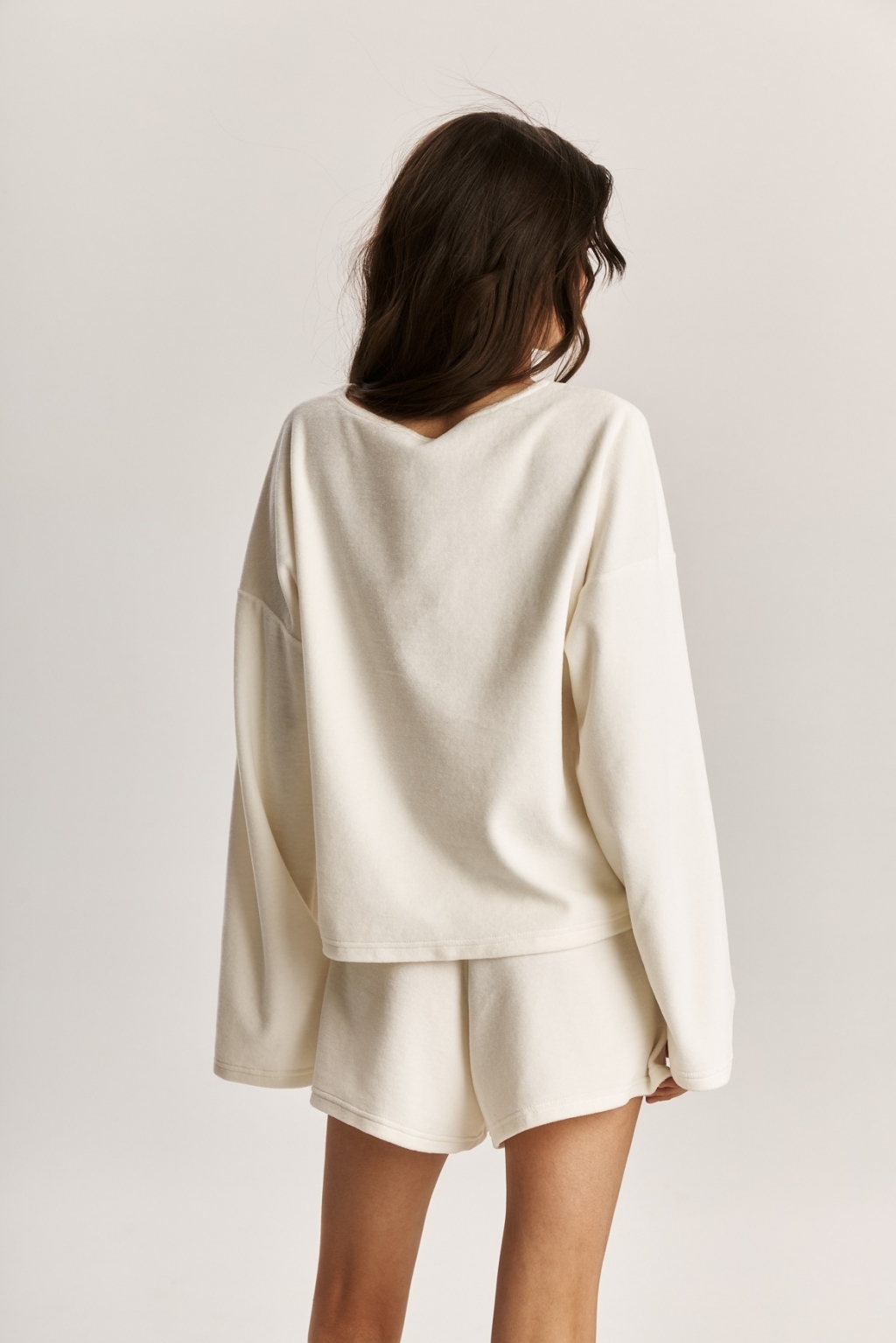 Пижама свободного фасона из хлопкового велюра имеют невероятно нежную бархатистую фактуру. Пижама представлена шортами и лонгсливом. За счет натурального состава, пижама обеспечивает максимальный комфорт для тела.
