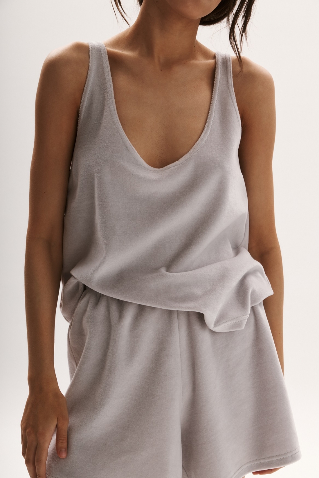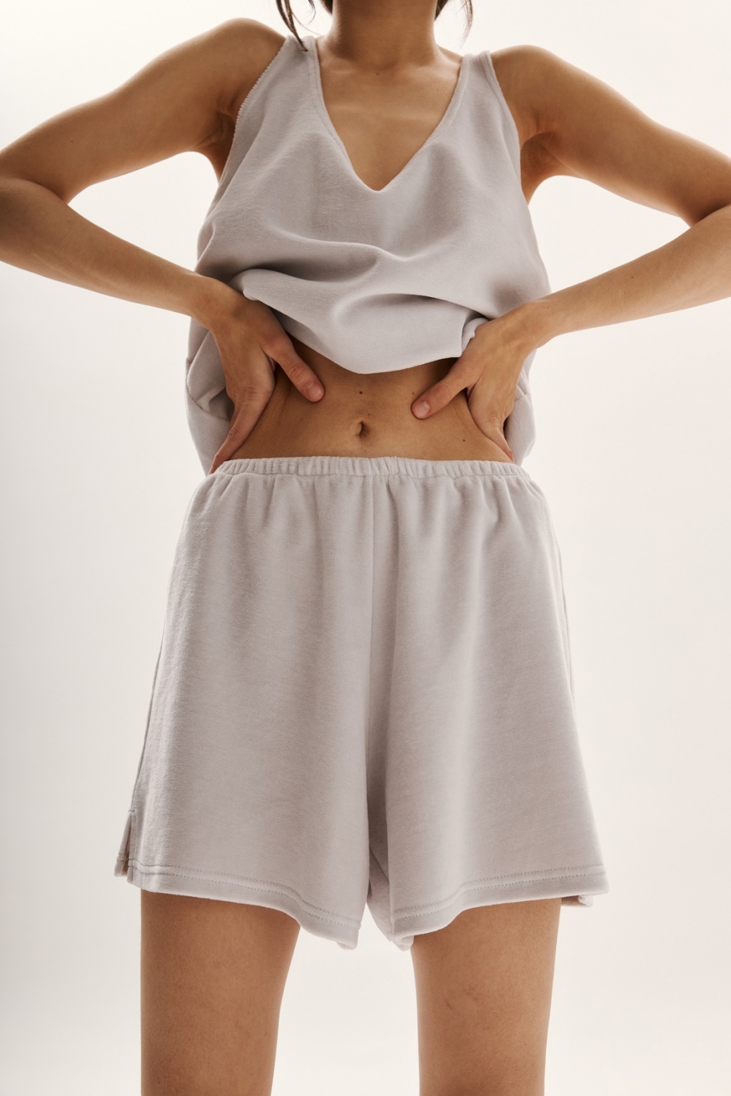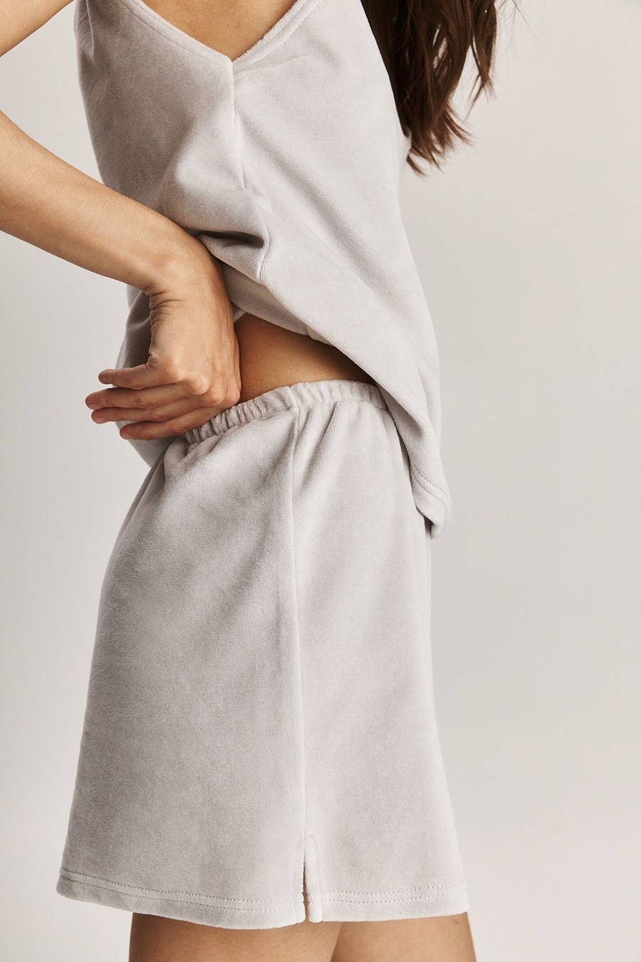 Шорты свободного фасона из хлопкового велюра имеют невероятно нежную бархатистую фактуру. За счет натурального состава обеспечивают максимальный комфорт для тела.
