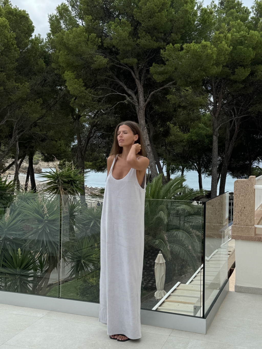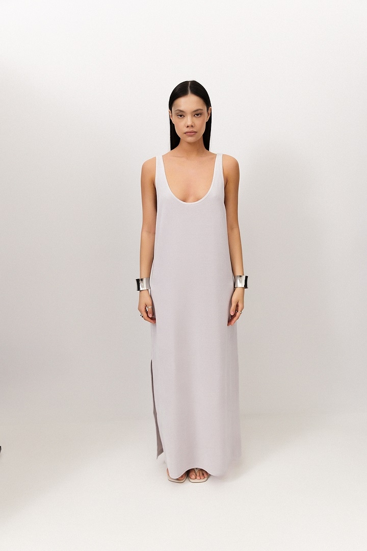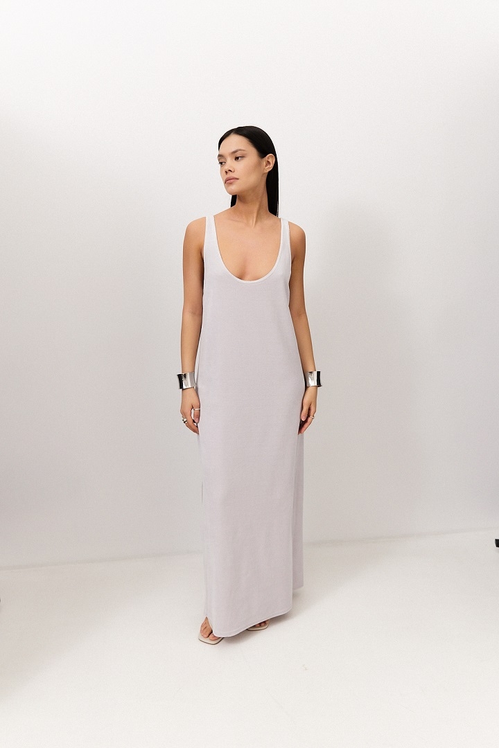 Платье в длине макси Майка свободного фасона с разрезом сбоку из хлопкового велюра имеет невероятно нежную бархатистую фактуру. За счет натурального состава обеспечивает максимальный комфорт для тела. Идеально для дома и отдыха