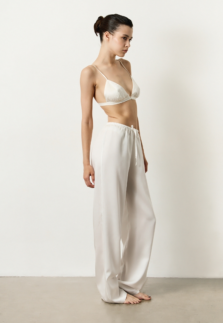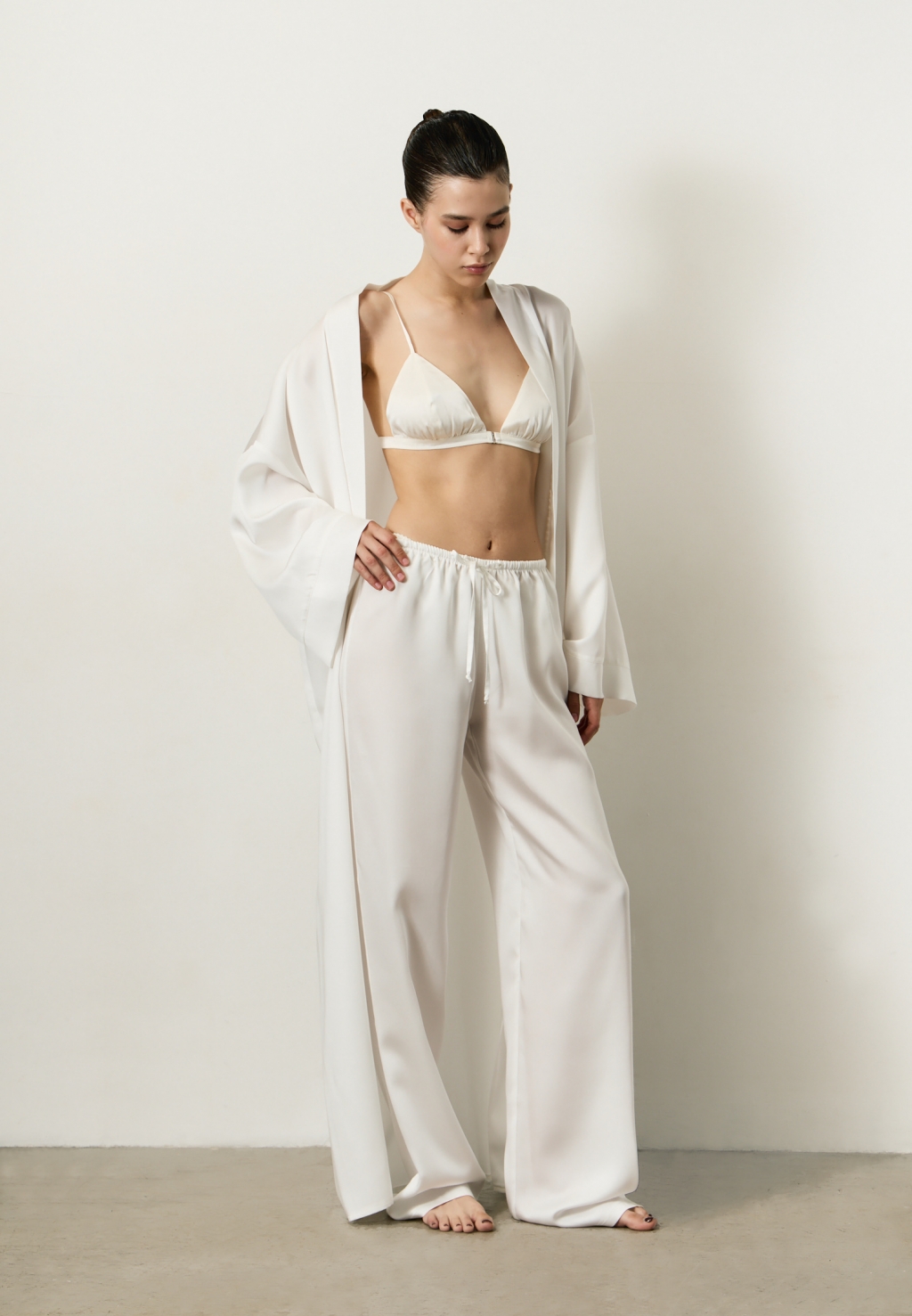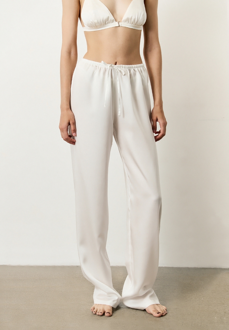 Пижамные брюки выполнены из 100% вискозы на тонкой резинке со шнурком. За счет увеличенной длины и натуральности материала, брюки подарят истинный комфорт. Пижамные брюки сочетаются с пеньюаром NIKA и создают стильный пижамный образ не только дома, но и на отдыхе у моря.