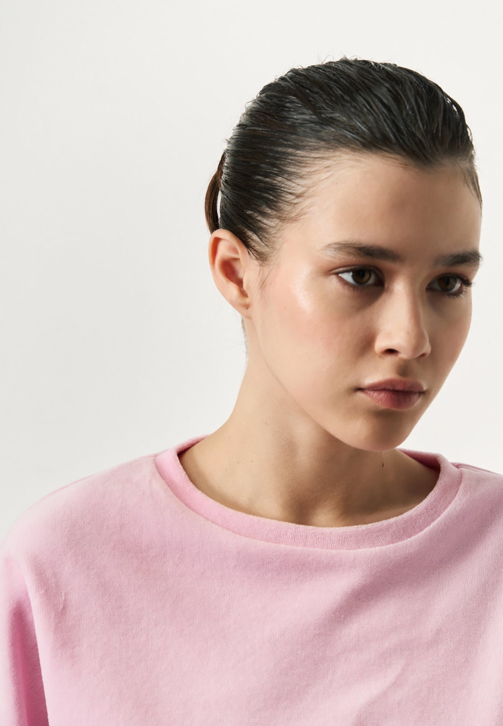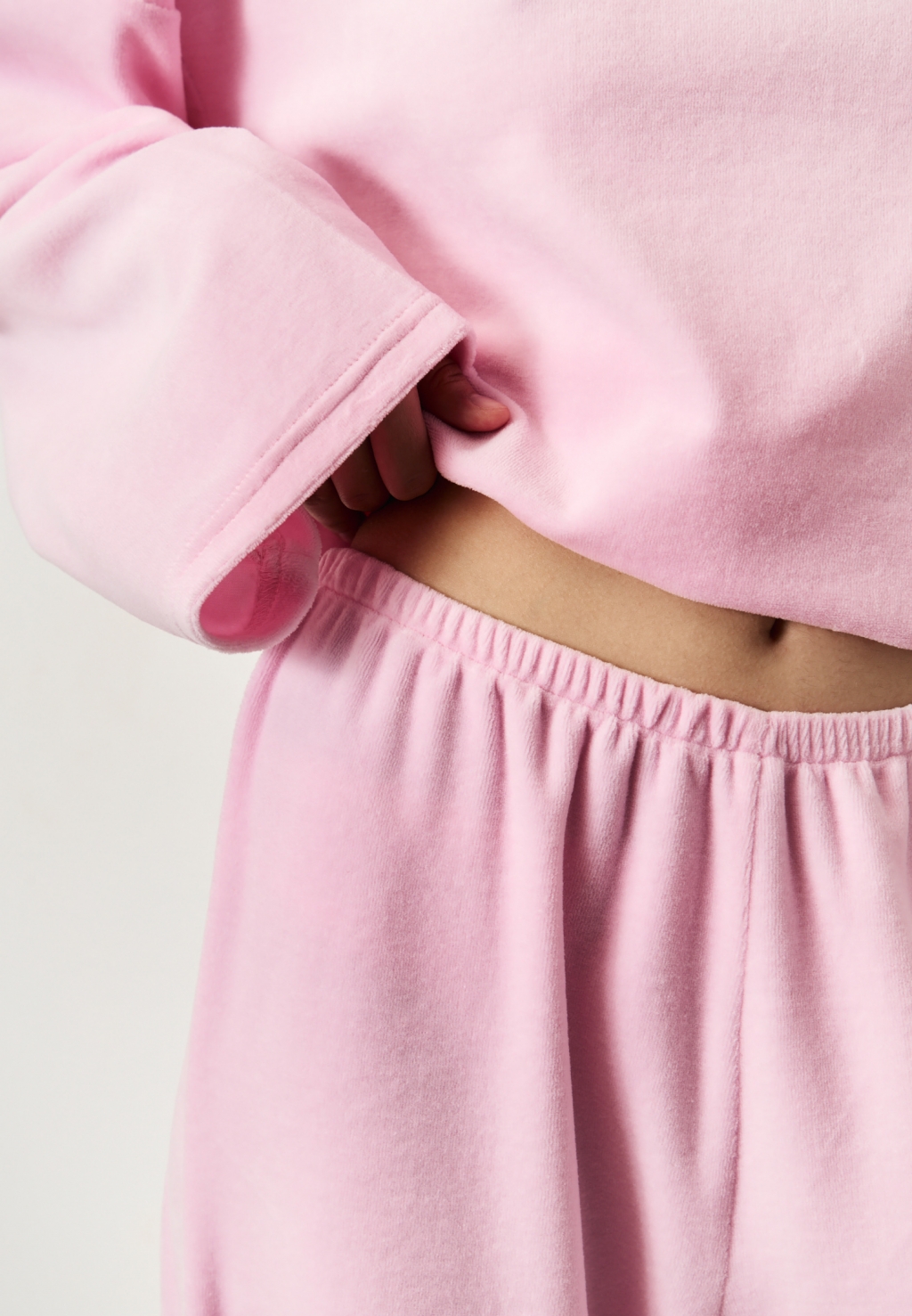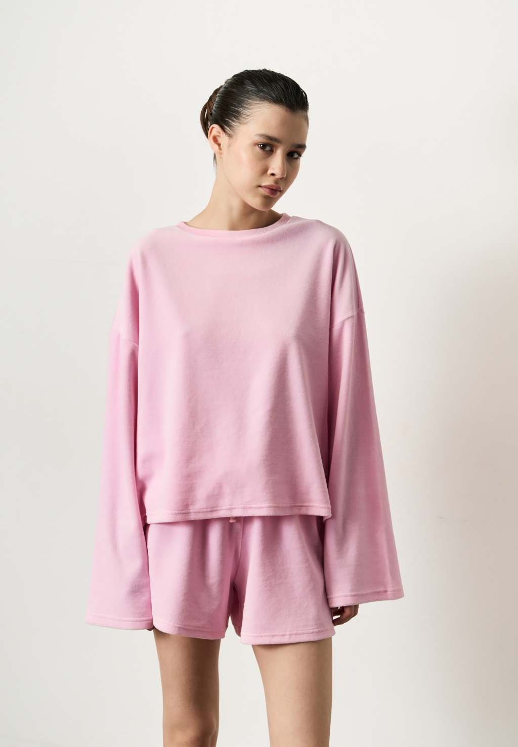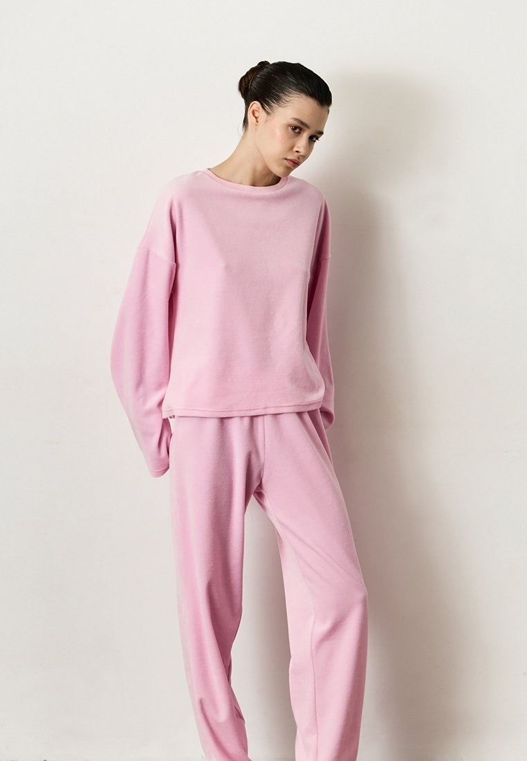 Пижамный лонгслив свободного фасона из хлопкового велюра с невероятно нежной бархатистой фактурой; за счет натурального состава обеспечивает максимальный комфорт для тела. Сочетайте с шортами или брюками из коллекции VELOUR для создания стильного уютного образа