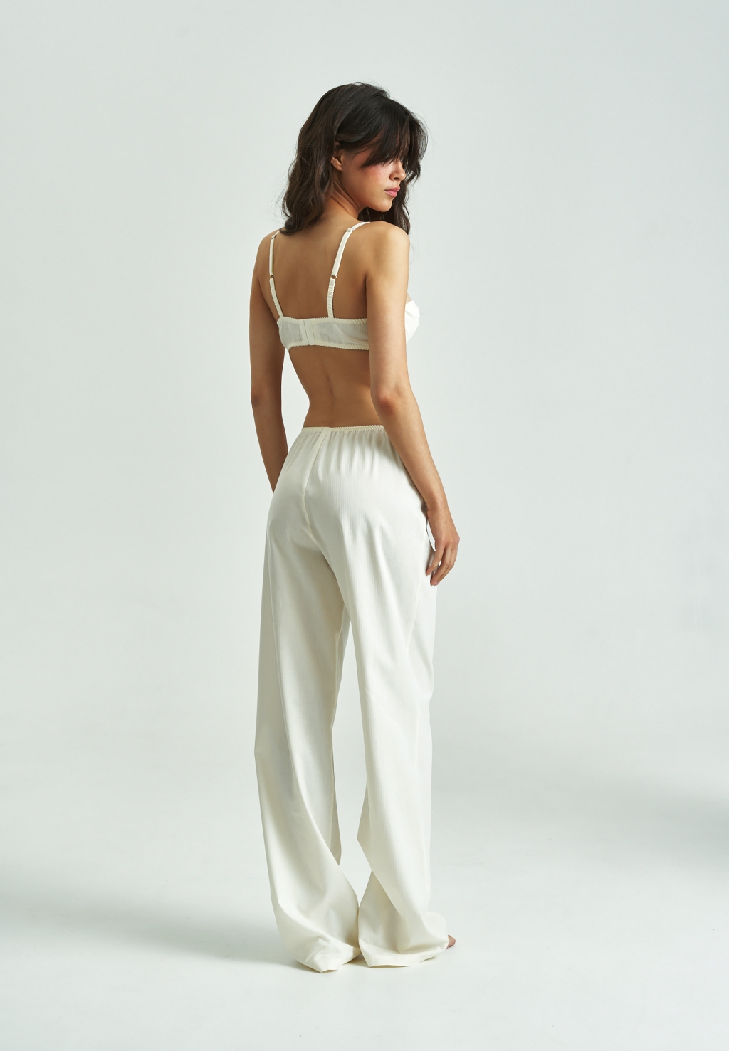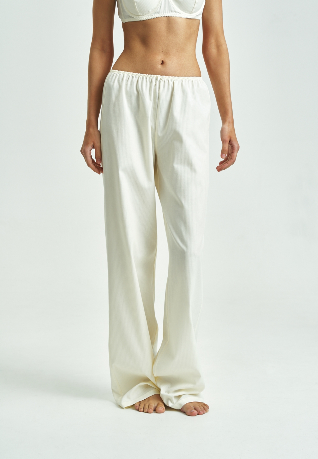 Прямые пижамные брюки MARTA BUTTER выполнены из 100% премиального рубашечного итальянского хлопка жаккардового плетения. Отделка мягкой бельевой резинкой и бантиком создает нежный акцент. Создавайте стильные домашние образы и не только, сочетая брюки с бюстгальтером MARTA BUTTER и другими изделиями OLUBVI