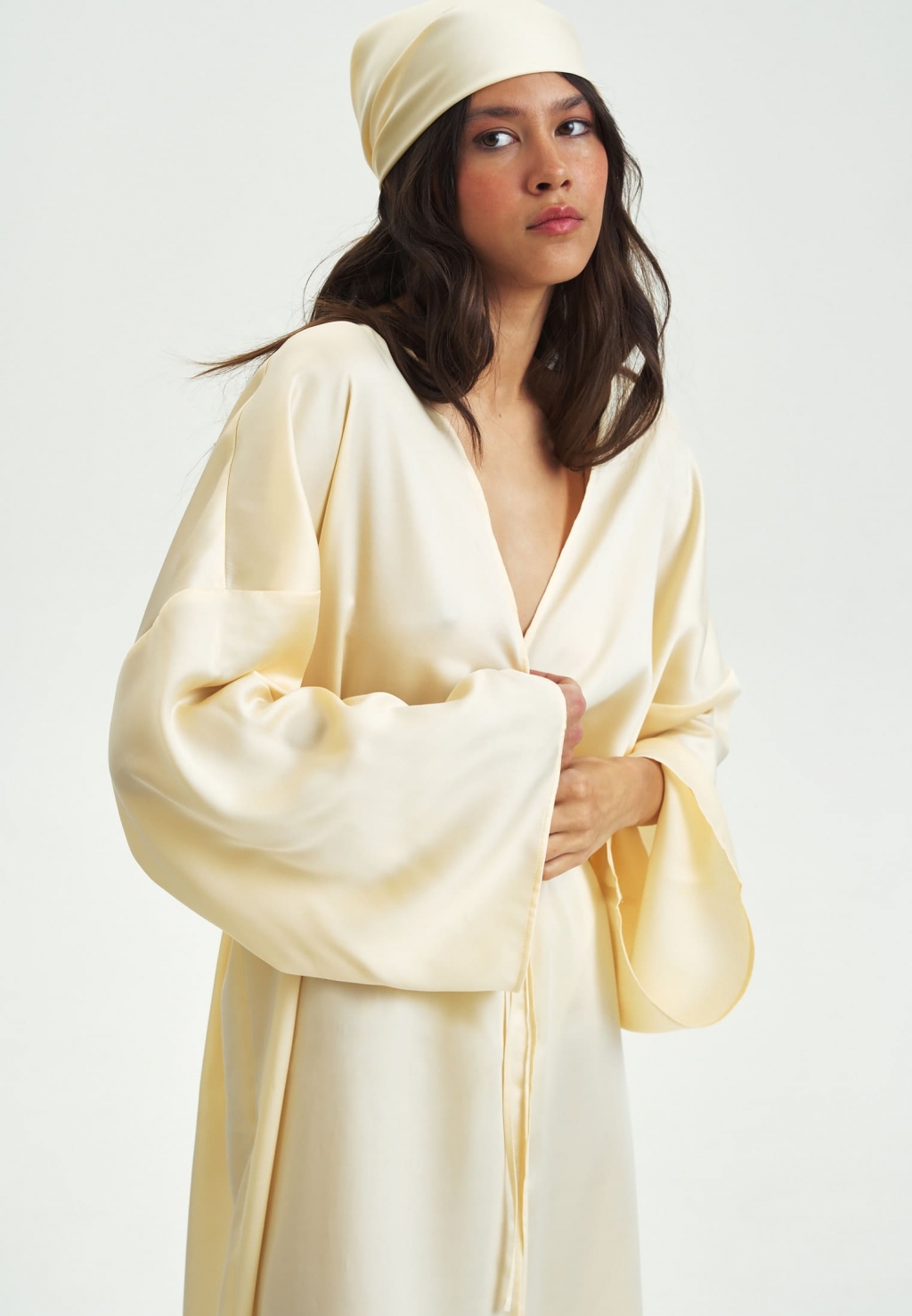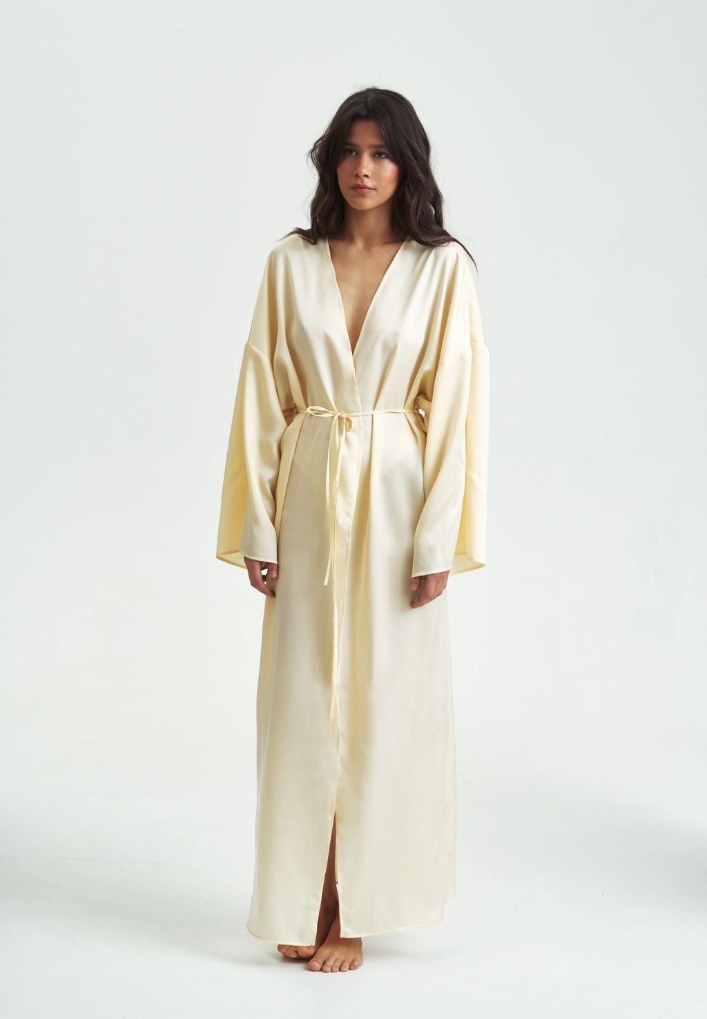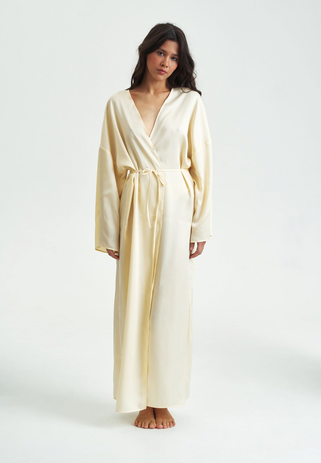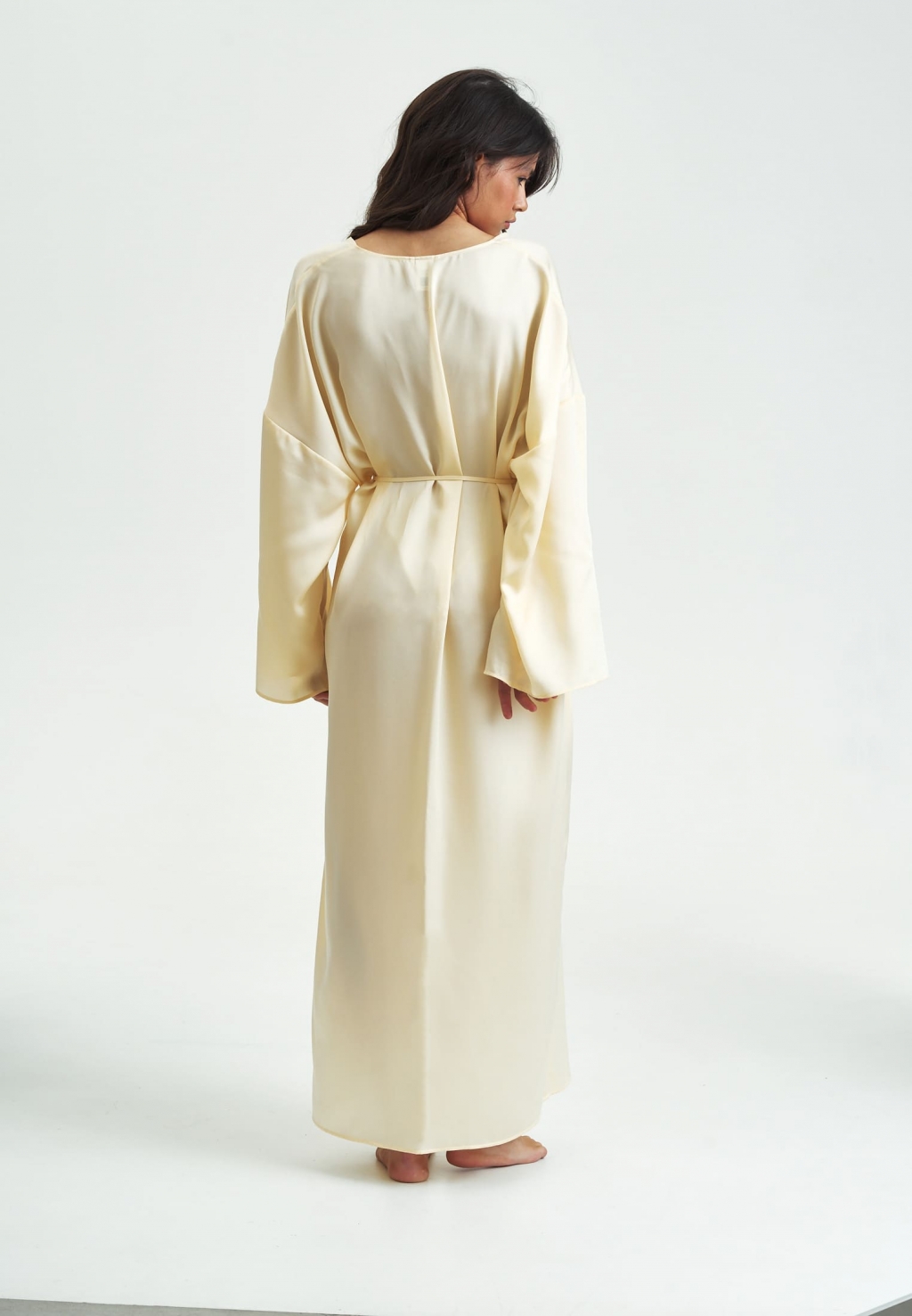 Лёгкость и истинный комфорт – то, что вы испытаете, надев пеньюар LILIYA из струящегося 100% лиоцелла - натуральной ткани из волокон эвкалипта. Свободный фасон, широкие рукава, длина макси и полностью натуральная сияющая ткань дают ощущение невероятной лёгкости и грации. Халат можно использовать как дома, так и в отпуске у моря, в качестве кимоно.